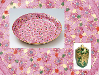 夾彩(きょうさい)桜花文皿をはじめ、自在に描かれた金彩など