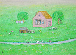 左:小林 研三 「野原の家族」 油彩4号 1990年(非売)