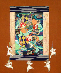 左:古布のジャパニーズアートキルト 野田真美 ダンシング・エンジェル