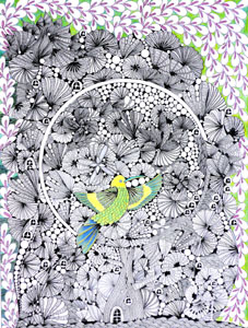 「蒼き鳥」インク・パステル 41×31cm