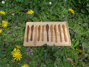 右:「トレー」 W32,5×D20,0cm 「バターナイフ」 W 約15,0×D1,8cm