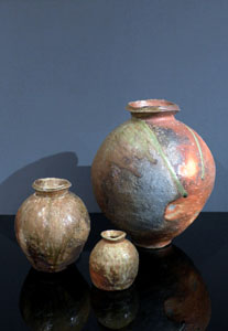「伊賀壺」径21,3×高24,8cm  「伊賀小壺」径13,4×高14,5cm  「伊賀大壺」径38,0×高44,5cm