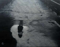遠い記憶の風景を探し続ける。 光と影を描き続ける八島先生の世界は、漆黒の画
