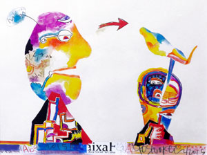 ユーモラスな顔も見つかる。6年ぶりの吉岡先生の個展です。 新作の水彩画6点