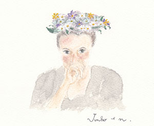 花冠の少女 紙に水彩画 15×16cm 初夏に会う キャンバスに水彩画 F0号