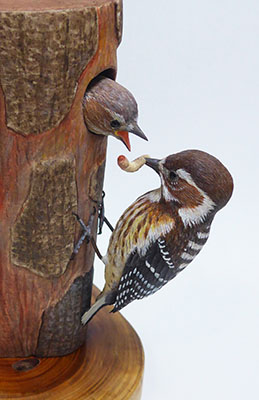 「コゲラ親子」径18×1高24,5cm 「キセキレイ親子」38×15×高11,8cm
