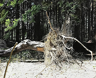 忠実に描かれた木の根、力強く生きた命でさえ失われていく事実が そこにみえる。