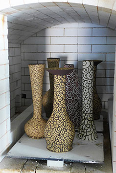 取るように 彫ったり、描いたり。 この模様で、槇原さんの焼物と一目で わかる。