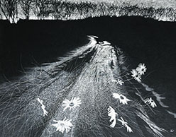 行き場のない日常の意識のありようを白の線にした新作を中心に