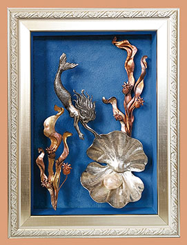 「海底の宝物」180×130×45mm(洋白・銅・真珠)