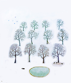 「ポコのいる雪景色」油彩画F10 1970年 「花の木のまわり」油彩画F10 1972年