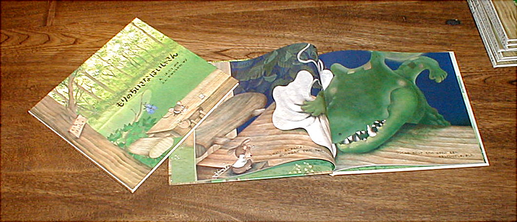 主人公のねずみとワニを細密にいきいきと描いています。ぜひ、ご覧下さい。