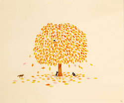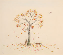 「落ち葉」水彩 「落ち葉(木とタヌキ)」水彩