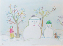 「雪の木立ち」 水 彩 「雪だるま」 水 彩