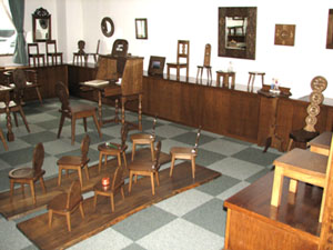 左「ミニ椅子」 巾30×奥行27×座高22,5cm 中「台(ミニテーブル)」 25×33×高15cm 右「ミニ椅子」 巾30×奥行27×座高20,5cm 2008年会場
