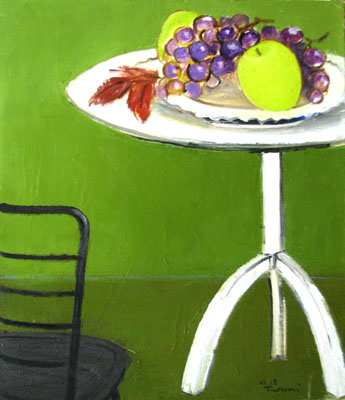 常盤井常子「YoとLico」油彩画 堤 剛宏「白いテーブルと果物」油彩画
