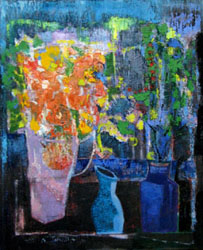 「静物(花)」油彩12号 1999年 「再会」油彩6号 2002年