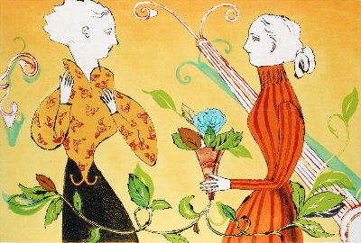 「In the Park」銅版画 24×19cm 価格 額付¥38,850(税込) 「blue rose」リトグラフ 39×57cm 価格 額付¥73,500(税込)