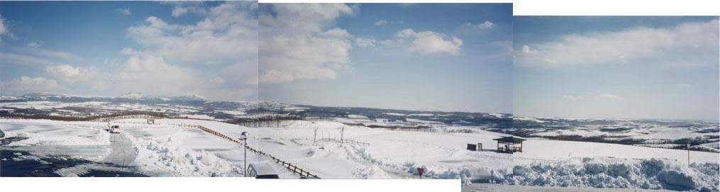 900草原より山側。900草原展望台は360°の視界が広がる展望台。片方は山に近く、もう一方の方角は平地が広がる。