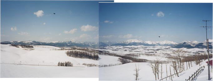 この写真では山が小さく見えますが、実際はかなり手前に、大きく見えます。・・・・鳥は写真を写す間に移動した・・・。