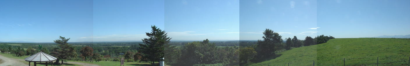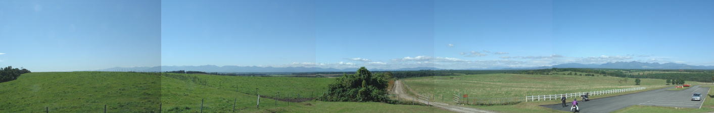十勝牧場の展望台より望む十勝平野。ぐるっと300°ぐらいの写真です。見にくいけど(笑)
