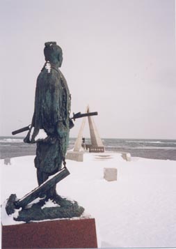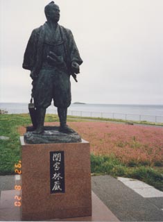 | なかなかこういう風に撮れないよ。 夏にはたくさんの観光客がいますので。 間宮林蔵は北を向いているのだ。 `01の流氷旅行にて。 |