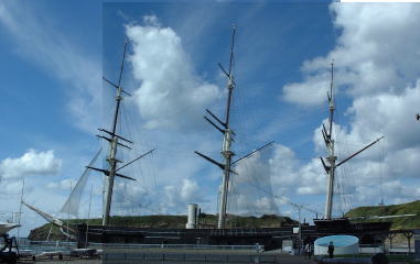 江差の港にいる、開陽丸。