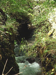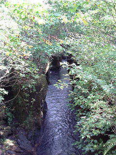 崖と崖の間を清らかな水が流れています。垂直な崖なので、人工的に作った水路のような