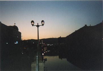`98北海道旅行にて。 上は夕暮れ時の小樽運河です。 写るんですで撮ったものをパソコンで修正。 下はもう真っ暗。 同じ場所だけどね・・・デジカメならもっとちゃんと 撮れたかもしれないけど・・・・まだ無かったからね。 |