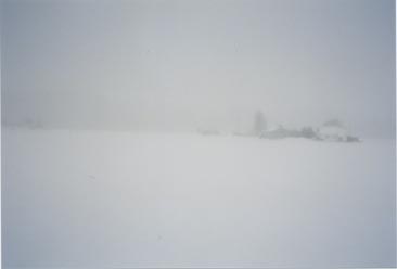 吹雪でなーんにも見えない。うっすら民家が見えますが・・・・。