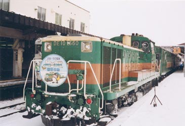 上の左の写真は網走駅にて流氷ノロッコ号。