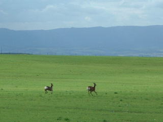 白金模範牧場に侵入したシカ。 牛のかわりに牧草でも食べて たのかな〜? |