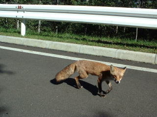 オロフレ峠にてキツネ。 すぐに隠れちゃいました。 |