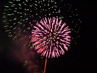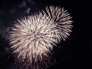 | 下がさんざん待った、氷瀑まつり会場での花火大会。時間は15分ほどですが空気が澄んでいるのか、 夏よりも数段見応えがあります。 それにしてもデジカメは色々取れるもんだ。腕がなくても(爆) |