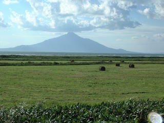 左上:道の駅富士見 工事現場みたいなのが邪魔です。 上:サロベツ駐車公園 よーく見えますね。 左:道道106号の途中 路上に車を止めて撮影。牧草ロールががいい感じ。 |