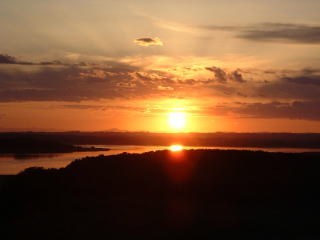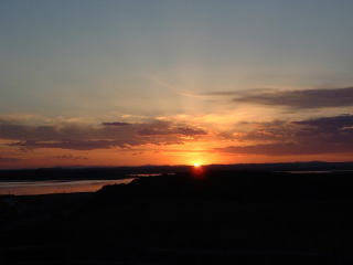 左上、左中、左下、右下と順に沈んでいく太陽。