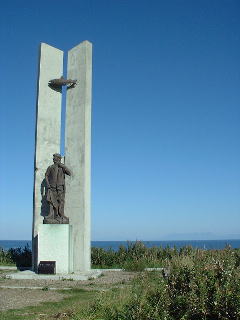 網走市の北にある岬。 左の写真は遠景ですが、これをみれば わかる通りのっぺりしてますね。 上は海の神の像。 ここまで歩くには結構時間がかかります。 海の向こうに見えるのは知床半島です。 |