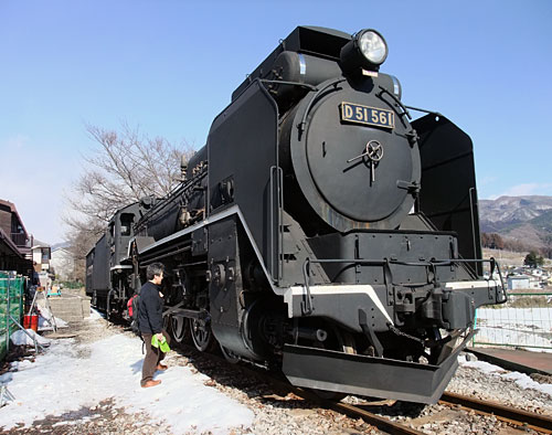 温泉上がりにホテルSLの隣りに展示してあるD51を見学させていただきました。オンシーズンには客車に乗って動くSLを体験できます。動力源はコンプレッサーでタンクにエアーを貯めて走らせるのだそうです。