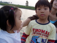 船から江戸川の水を触れるんだよ。時々、お魚もぴょん、て跳ねるんだ。