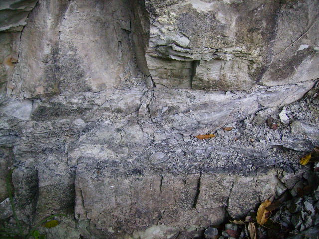 下部に砂岩質、中部に明瞭な凝灰岩、上部に砂岩質の凝灰岩がある。化石は中部の明瞭な凝灰岩の最下部から産出するが、この地点ではあまり植物化石を含んでいない。