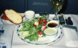 サラダ、ビーフの細切れ?ステーキ、添え物にミックスベジタブル、フライドポテト、パン、アップルケーキ。うーん、Cとの差は激しいですね、やはり。