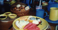 朝食はレストランで。コンチネンタル+1品を。コンチネンタルはパン盛り合わせ(アリ付き・・)、
