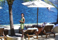 その後プールへ。思ったよりもゲストが多く、ベッドが足りない。スタッフが次々にベッドを倉庫から運んでました。その様がまるで体育係(学校で体育の時間に準備したでしょう?)のようで、面白かった。