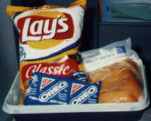 デンパ→グアムのYクラスの軽食はお菓子(オレオとポテチ)とサンドウィッチ。ま、胸焼けがしてとても食べれる状態じゃなかったので、ちょうど良かったかな?でも、焼き肉のせいで、お腹を壊し、大変だった・・・・。何回もトイレへ行きましたよ・・・。こんな時にはビジネスのありがたさを知るね〜。だって、Yのトイレって混んでるんだもん(;O;) で、お腹が落ち着くまでウォーターボーイを見てから、やっと熟睡。