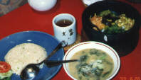 なんて言うか、全体的に油が多い感じで、私は思わずほとんど食べないうちに胸焼け?してしまいました(;O;) 一番奇妙だったのがテールスープ(写真右手前)。これは味噌汁の中にテールらしき物体(笑)とねぎとかいろいろ入ってるんだよね〜。味は、やっぱり味噌ぽいんだよなぁ・・・???テールスープって、こういうモノ??あっさりしたモノじゃなかったっけ??石焼きビビンバも・・・・・。あまり外れがないモノって思って頼んだんだけど・・・・。ハズレましたわ