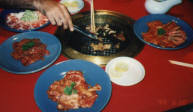 上タン(2皿)、タン(2皿)、バラ(1皿)、アイスを。いやぁ、ぱっと見よく食うなぁ〜って思うでしょうが、1皿は少ないんですよ、念のため。で、締めて31万ルピア!キャー高い!!でも、日本で焼き肉食べるよりは安いけどね〜、確かにσ(^-^; 味は日本の焼き肉屋に比べれば、正直かなり劣りますね〜。肉は輸入物らしいですが、それにしては・・・・ひどいです。タンなんて、超薄切りハムですね。焼くとクチュクチュって縮まってしまいまして・・・・(^-^;