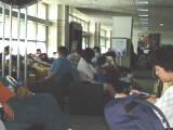 で、出国側のトコロになんとマックが出現!これで良いや〜って感じで買っちゃいましたわ。でも、お腹が空いていたから美味しかった!で、マックを買おうとしたら、なんか知った顔が。まさかなぁ・・・って通り過ぎたんだけど、やはり気になって振返ると・・・向こうから私に声を掛けてくれたのだ。同じイネ語の学校(クラスは別だけど)の友達でした。お互いバリに来ているコトを知らなかったので、驚いたわ〜!