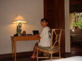 そうそう、プールから帰ってきて、テラスに出て外を見ていたら・・・なんでかいまだに謎なんだけど、オートロックでもないのに、鍵がかかっちゃったのだ!で、仕方ないからベランダからプールに行き、スタッフにフロントに電話して鍵を持って来てもらったのだ・・・・。その時もスタッフと試してみたんだけど、どうやっても鍵はかからないんだよね・・・・どうしてかかったんだろう??ハテハテ?しかし、1階の部屋で良かった・・・2階以上だったら、飛び降りる訳にもいかなし・・・庭に向かって叫ぶしかなかったのかなぁ???; ̄ロ ̄)