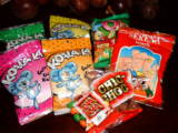 しかし、スーツケースが壊れたのは、私のせいかなぁ・・・なんと言っても、メッチャ重かったからね〜。預けた時に見たら、約40キロもあったっけ・・・あんな重い物、投げたくもなるわなぁ・・・と思ったわσ(^-^; 中身は、ま、いろいろだけど、今回の目玉はマンゴスチンでしょう!これだけでも一体何キロあったことか!税関でドキドキしたけど、難なくクリア!やはり、善人面だからだね〜(^-^) あとは、軽いけど多量に買ったのはお菓子かな?写真のお菓子はオススメの品です!!インドネシアはまずいお菓子が多いけど、写真のヤツは美味しいよ!!