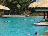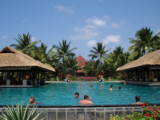 さて、昨日の午後は、買い物から帰って来て、ナシゴレンを食べてから、インターコンのプールへ。なんて良い天気なんでしょう!太陽が眩しい!!ビーチは、ジンバランよりもヌサドゥアの方がキレイだね、うんうん。インターコンのプールはシンプルな感じだけど、雰囲気は良いね〜。のんびりするには向いてると思うな。で、ベッドでゴロゴロしていたんだけど、暑い、暑い・・・喉が渇いたので飲み物を注文したかったんだけど、用がある時に限って、こっちに人が来ない・・・要らぬ時はうざいほどいるのにねぇ・・・(^-^; やっとスタッフを捕まえてフローズンマルガリータを。旨い!!あっという間に飲み終わっちゃった・・・ハハハ。